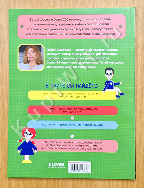 «В этом сборнике более 200 нестандартных игр и заданий по математике для учеников 2 - 4‑го классов. Занятия по книге научат детей быстрому счёту в уме, помогут развить концентрацию внимания и логико-математический интеллект.»