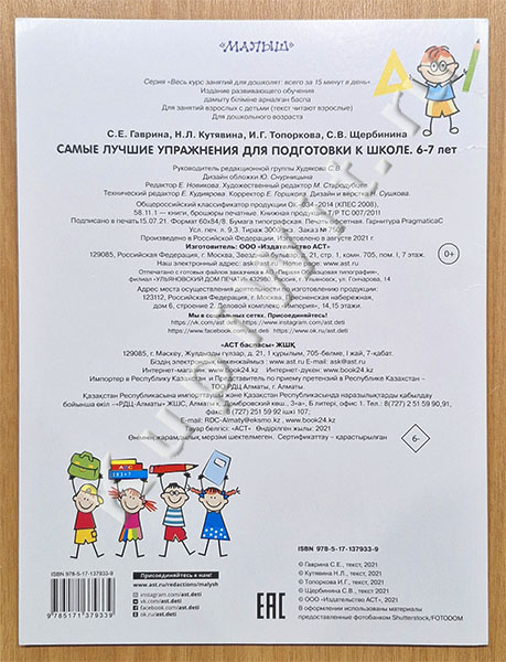 Книга «Самые лучшие упражнения по подготовке к школе. 6-7 лет». Авторы: С.Е. Гаврина, Н.Л. Кутявина, И.Г. Топоркова, С.В. Щербинина.