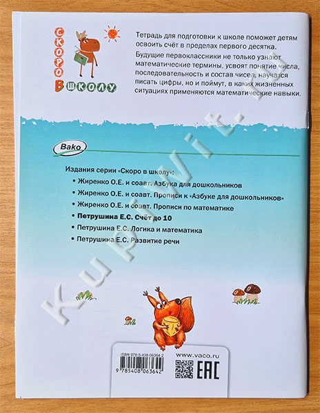 Счёт до 10. Тетрадь для подготовки к школе детей 5–7 лет, серия «Скоро в школу» (Е.С. Петрушина) - математика для дошкольников, задания для подготовки к школе. Будущие первоклассники освоят счёт в пределах 10, узнают математические термины и геометрические фигуры, усвоят понятие числа, последовательность и состав чисел, научатся писать цифры, а также поймут, в каких жизненных ситуациях применяются математические навыки.