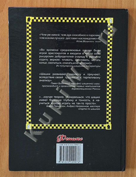 «…Взяться за перо автора заставили накопленный опыт и мысль о том, что именно подобного самоучителя со множеством неотягощенных словесностью, но разнообразных калейдоскопических фрагментов недоставало ему в молодые годы, чтобы открыть (десятилетиями ранее) удивительный и захватывающий мир шашек.»