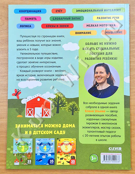 «Путешествуя по страницам книги, ваш ребёнок получит все знания, умения и навыки, которые важно усвоить в 3 года. Увлекательное путешествие, построенное в виде игры-ходилки, сделает занятие интересным, а процесс обучения осознанным.